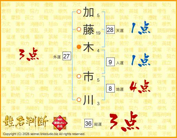 加藤木市川さんの総運は36画の3点!