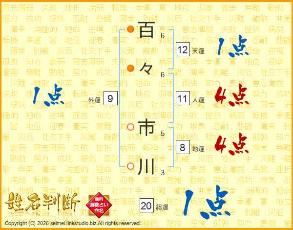 百々市川さんの人運は11画の4点!