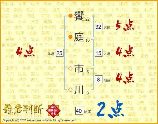 饗庭市川さんの天運は32画の5点!