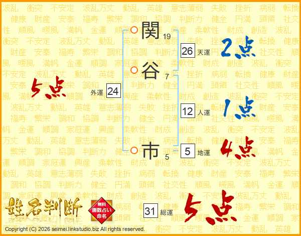 関谷市さんの総運は31画の5点!