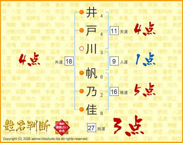 井戸川帆乃佳さんの総運は27画の3点!