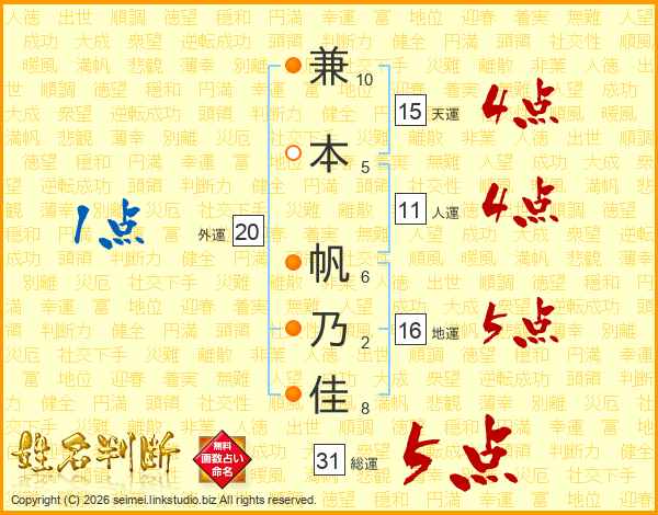 兼本帆乃佳さんの総運は31画の5点!
