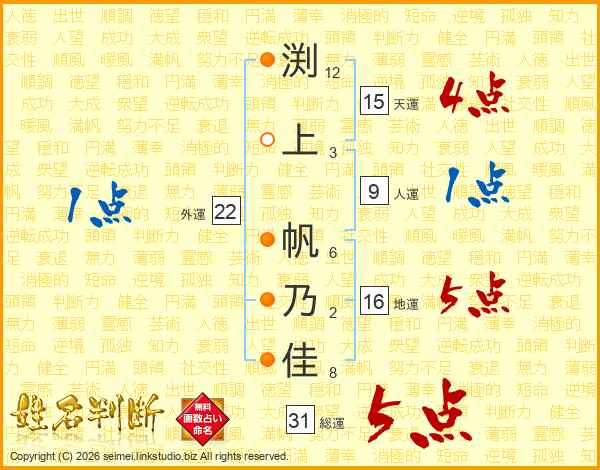 渕上帆乃佳さんの総運は31画の5点!