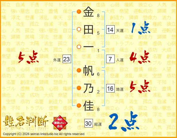 金田一帆乃佳さんの総運は30画の2点!