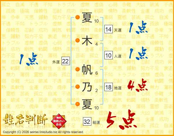 夏木帆乃夏さんの総運は32画の5点!
