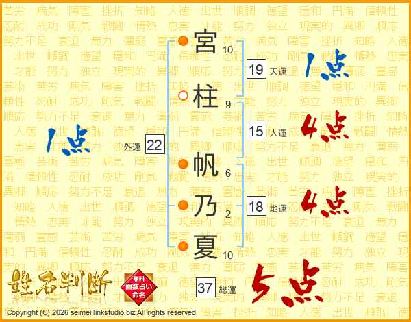 宮柱帆乃夏さんの総運は37画の5点!
