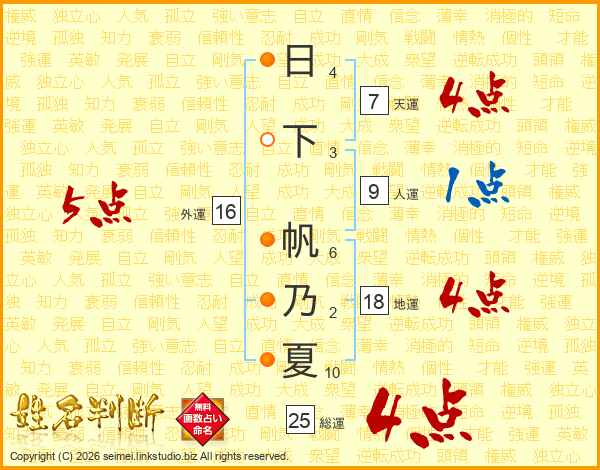 日下帆乃夏さんの総運は25画の4点!