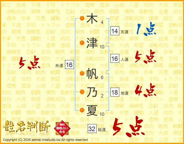 木津帆乃夏さんの総運は32画の5点!