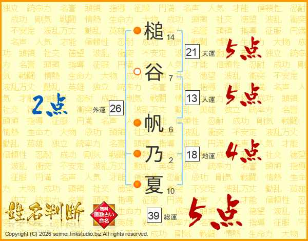 槌谷帆乃夏さんの総運は39画の5点!