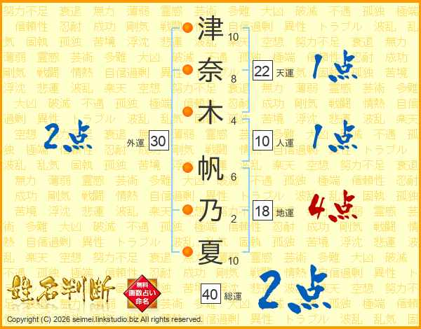 津奈木帆乃夏さんの総運は40画の2点!