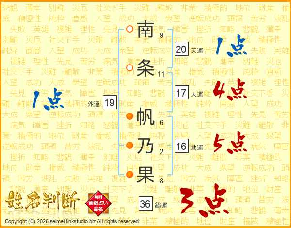 南条帆乃果さんの総運は36画の3点!