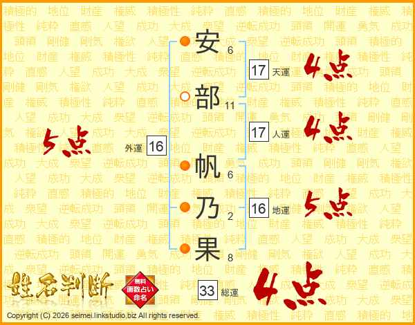 安部帆乃果さんの総運は33画の4点!