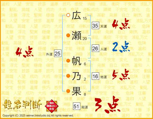 広瀬帆乃果さんの総運は51画の3点!