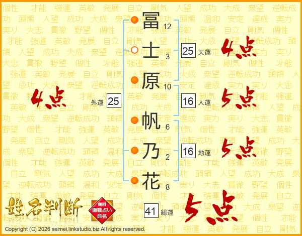 冨士原帆乃花さんの総運は41画の5点!
