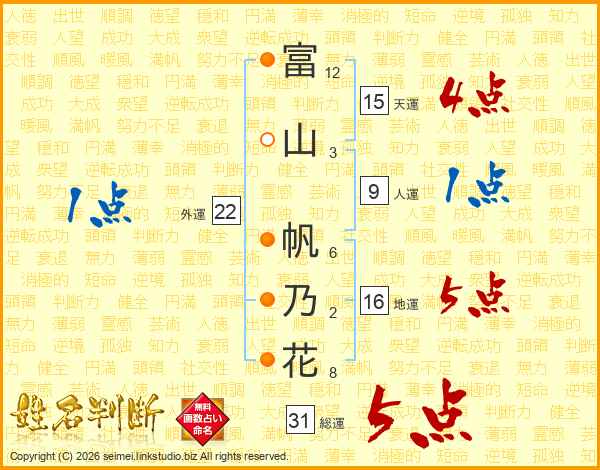 富山帆乃花さんの総運は31画の5点!