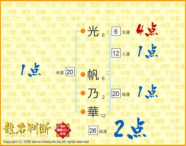 光帆乃華さんの総運は26画の2点!