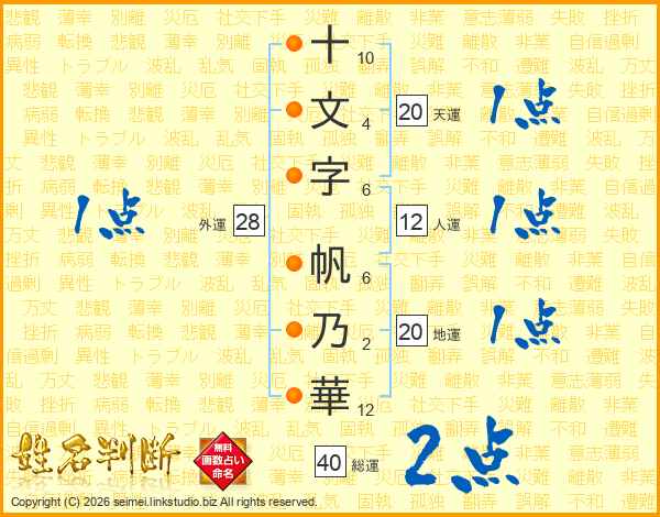 十文字帆乃華さんの総運は40画の2点!