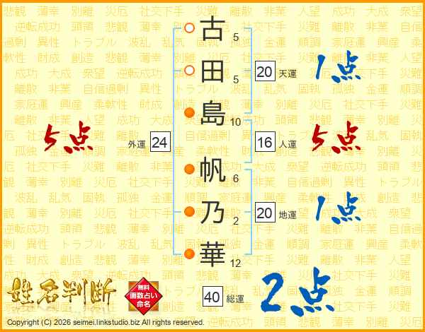 古田島帆乃華さんの総運は40画の2点!