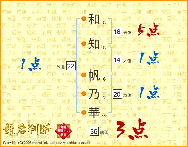 和知帆乃華さんの人運は14画の1点!