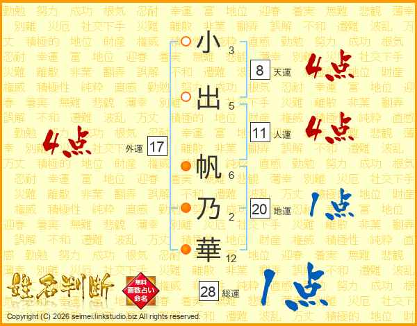 小出帆乃華さんの人運は11画の4点!