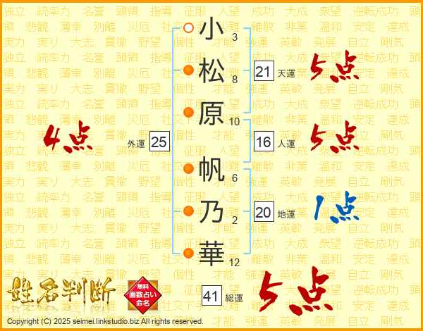 小松原帆乃華さんの総運は41画の5点!