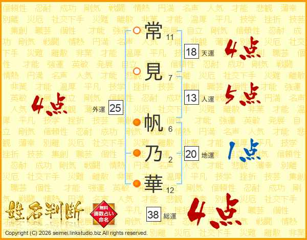 常見帆乃華さんの総運は38画の4点!