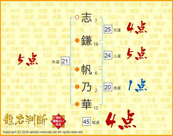志鎌帆乃華さんの総運は45画の4点!