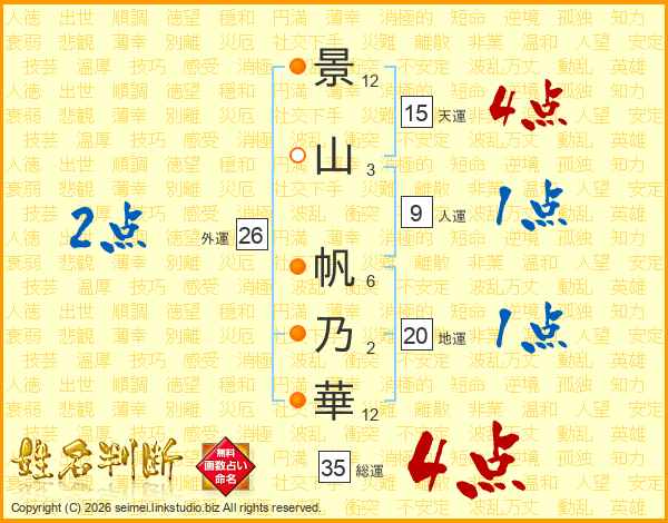 景山帆乃華さんの総運は35画の4点!