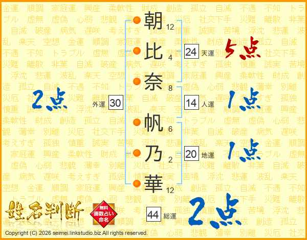 朝比奈帆乃華さんの総運は44画の2点!
