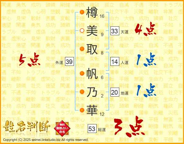 樽美取帆乃華さんの天運は33画の4点!