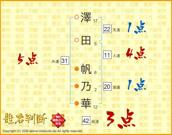 澤田帆乃華さんの外運は31画の5点!
