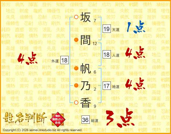 坂間帆乃香さんの外運は18画の4点!