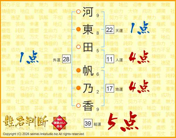 河東田帆乃香さんの総運は39画の5点!