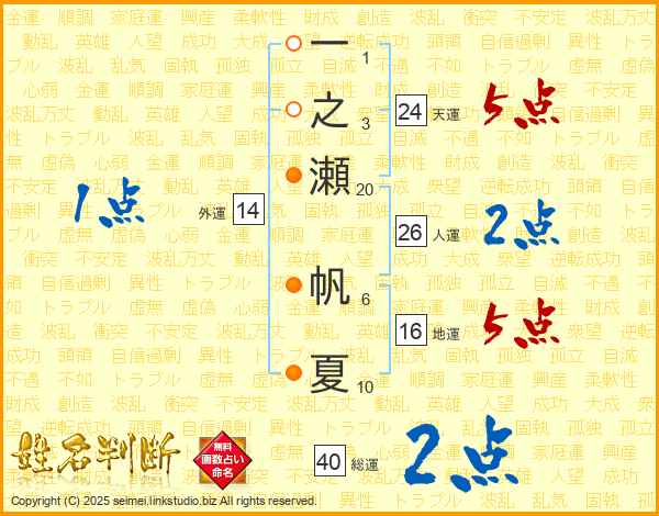 一之瀬帆夏さんの外運は14画の1点!