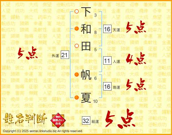下和田帆夏さんの総運は32画の5点!