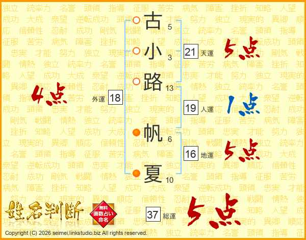 古小路帆夏さんの天運は21画の5点!