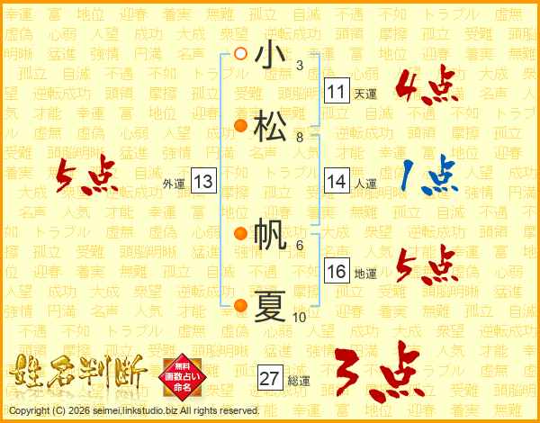 小松帆夏さんの外運は13画の5点!