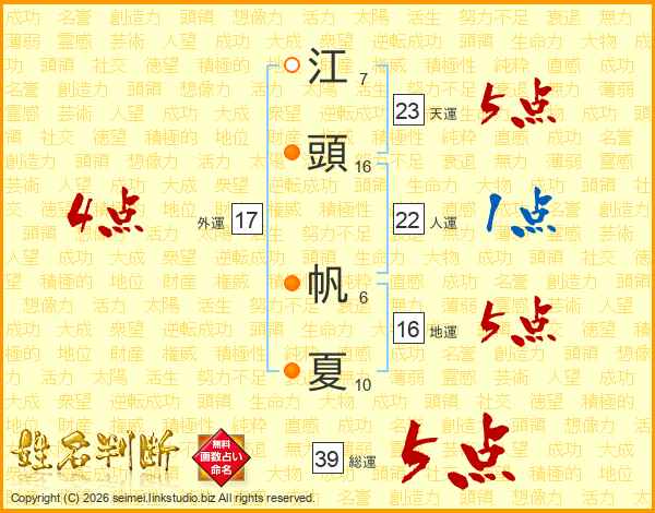 江頭帆夏さんの総運は39画の5点!