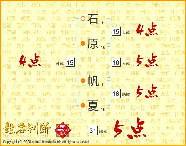 石原帆夏さんの総運は31画の5点!