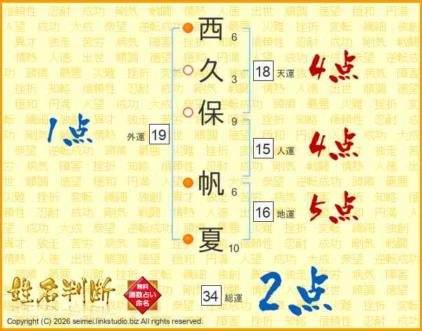 西久保帆夏さんの総運は34画の2点!