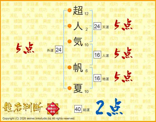 超人気帆夏さんの総運は40画の2点!