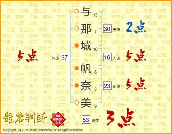 与那城帆奈美さんの総運は53画の3点!