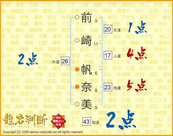前崎帆奈美さんの総運は43画の2点!