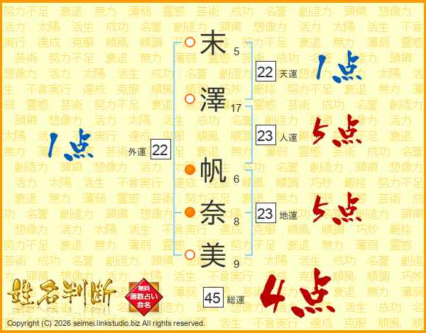 末澤帆奈美さんの総運は45画の4点!