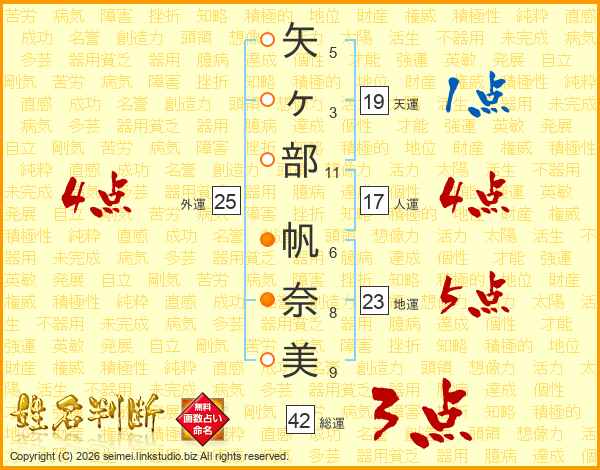 矢ヶ部帆奈美さんの天運は19画の1点!