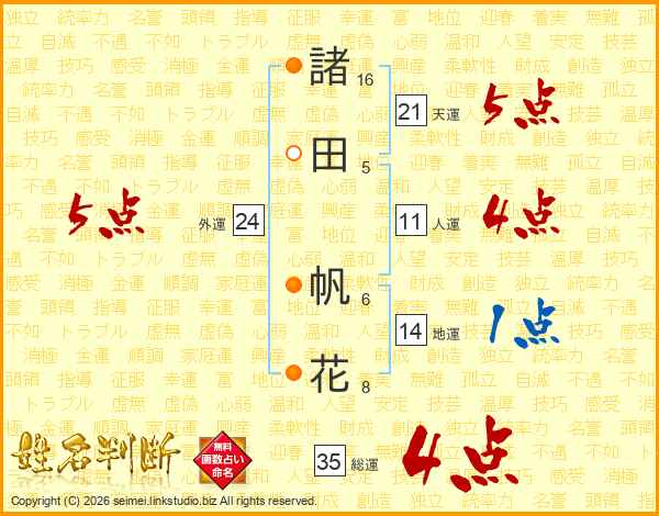 諸田帆花さんの外運は24画の5点!
