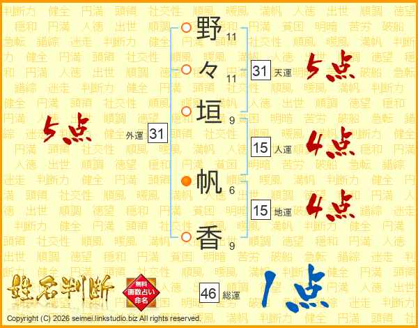野々垣帆香さんの総運は46画の1点!