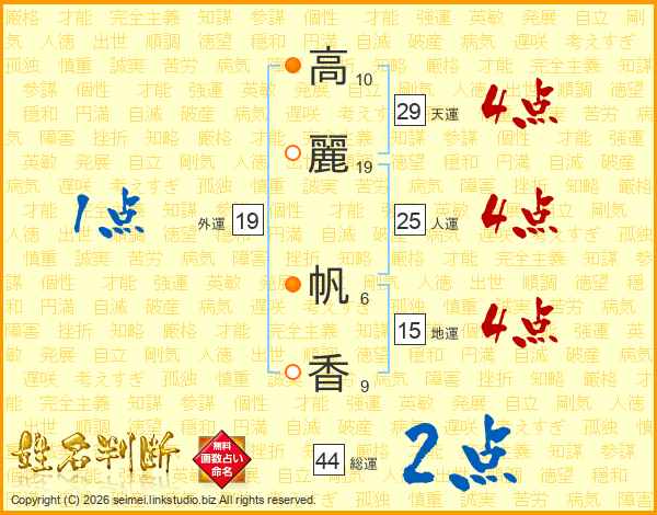 高麗帆香さんの総運は44画の2点!
