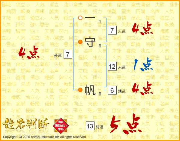 一守帆さんの外運は7画の4点!