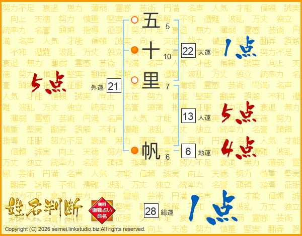 五十里帆さんの総運は28画の1点!
